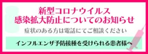 新型コロナウイルス感染拡大防止についてのお知らせ