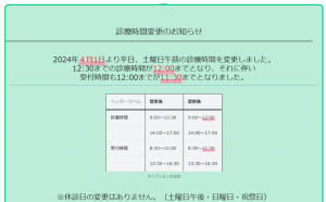 診療時間変更のお知らせ