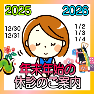 年末年始の休診は、12月30日(月)~1月3日(金)です。